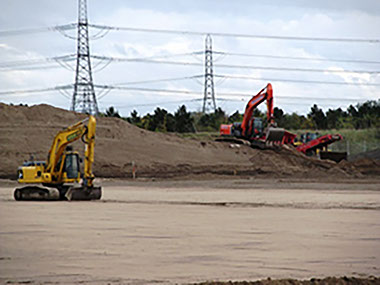 Project scope was to clear the existing land of underground obstructions, in particular 2000m3 of heavily reinforced concrete, remove unsuitable surface material and form the main future works compound and formation by moving approx. 250,000m3 of material around to the required areas of site, compacting the material using an dynamic compacting machine and subsequently testing the compaction. The site had trace elements of asbestos and as such air monitoring was continually check.